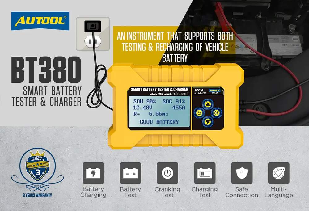 AUTOOL BT380 12V Car Battery Tester & Car Battery Charged Tool Automotive Battery Tester Analyzer Vehicle Power Bank CCA2400