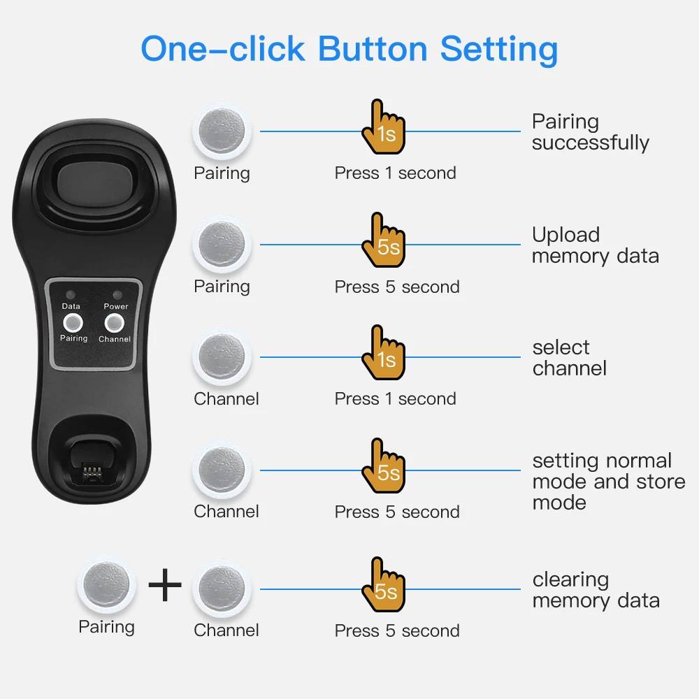 ①. Receive Barcode Data: Via advanced radio frequency wireless technology connection with your device to receive barcode data