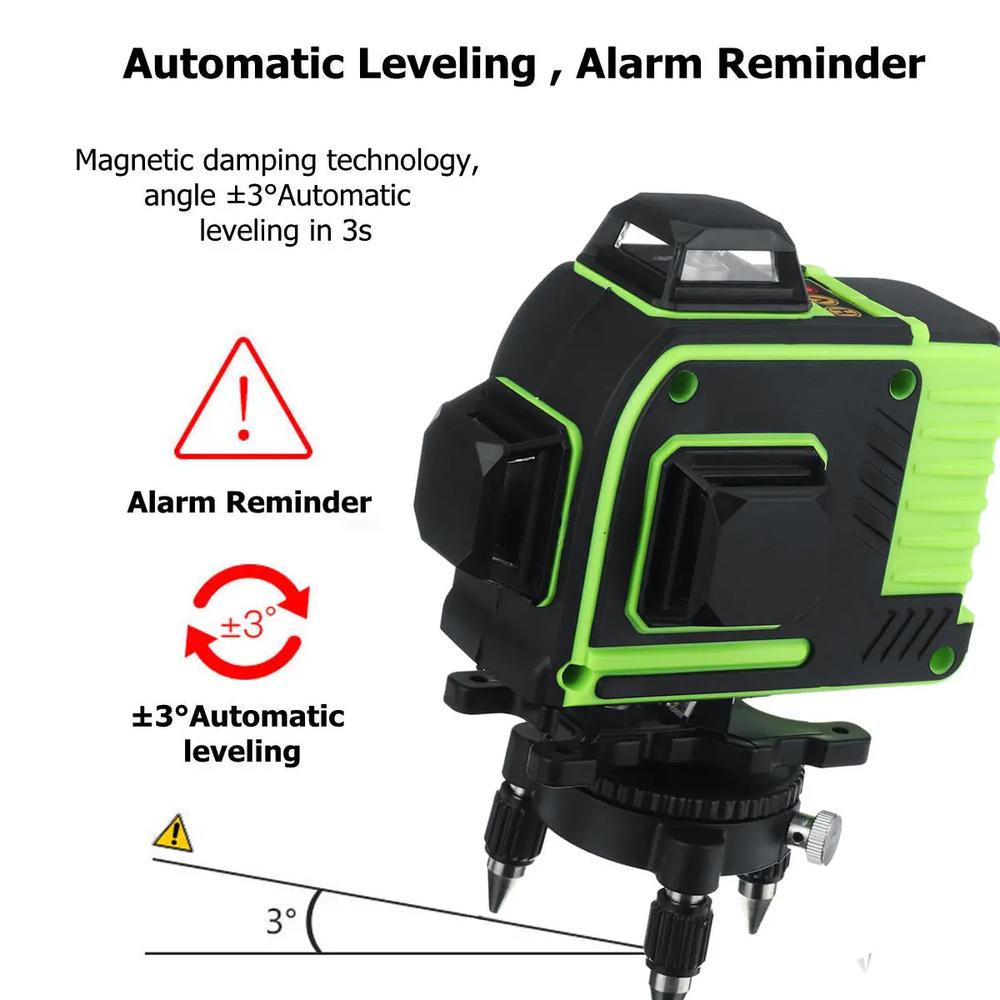 Αλφάδι Laser 4D 16 Γραμμών, αυτοεπιπεδούμενο, με βάση ανύψωσης, μίνι τρίποδο, στήριγμα τοίχου, μπαταρία 4000mAh και τηλεχειριστήριο. Με ισχυρή δέσμη πράσινου Laser 532nm.